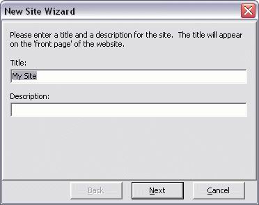 you first run PhotoGenic, the New Site Wizard will appear, and lead you through