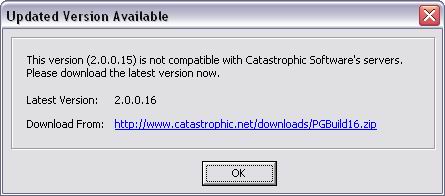 Among other things, PhotoGenic's login checks to make sure that you have enrolled in the Beta Program. To do this, an Internet connection is required, so if you use a dial-up connection, be sure that you are already connected. The login process also checks the version of the software that you are using. If a newer version is available, then you will be notified, and given a link to download the latest version. Click the link to download the update, unzip the downloaded file, run the installer to update the software, and then run PhotoGenic again.